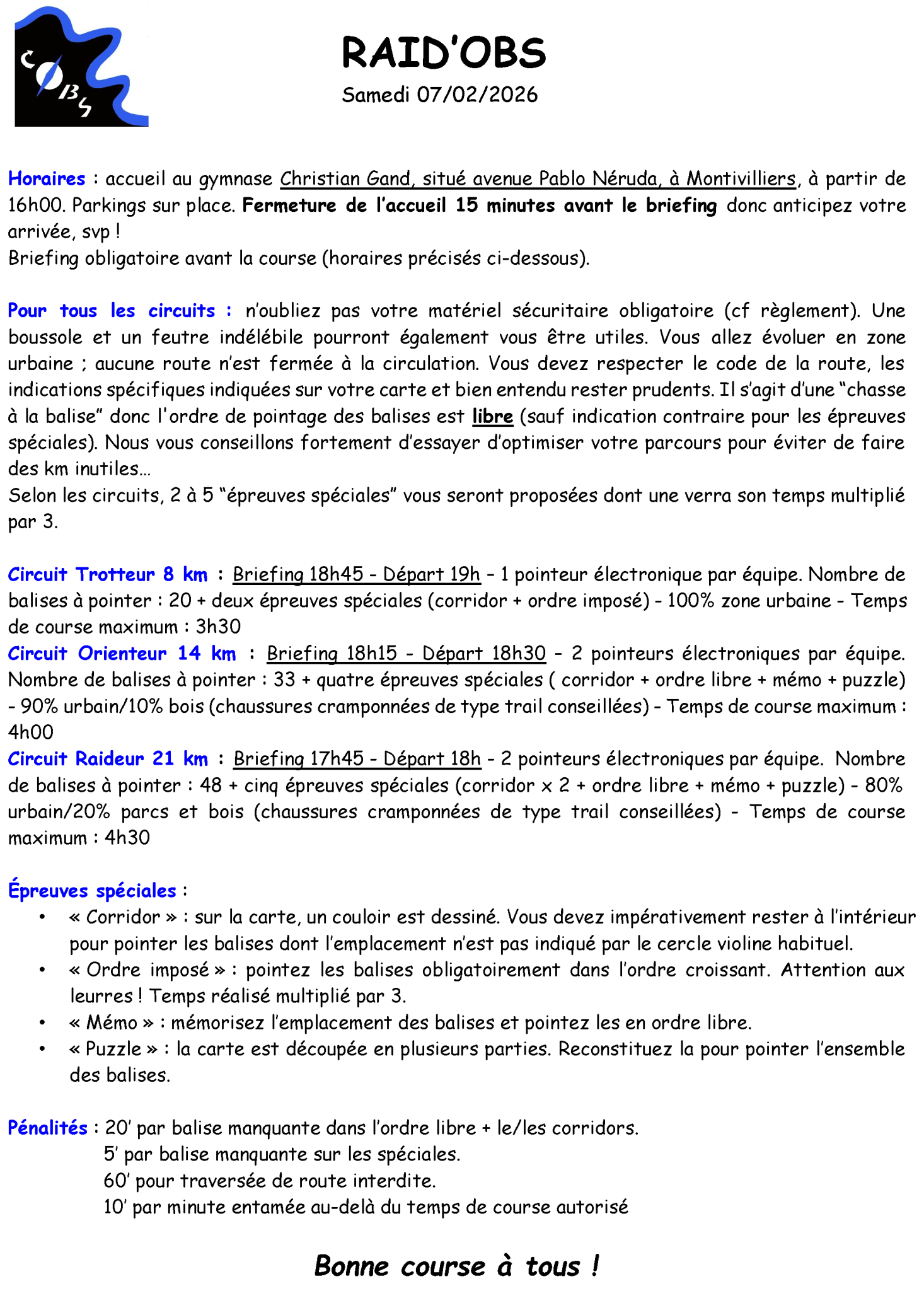 L’inscription à ce raid implique l’acceptation pleine et entière du règlement du Raid’Obs 2026.